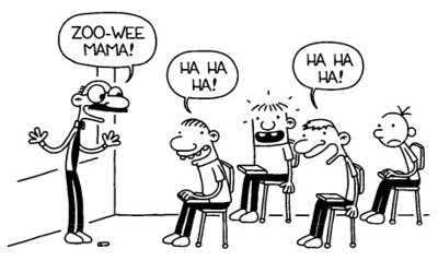 Lately I’ve been hanging out in Rodrick’s room after school and going through his stuff.